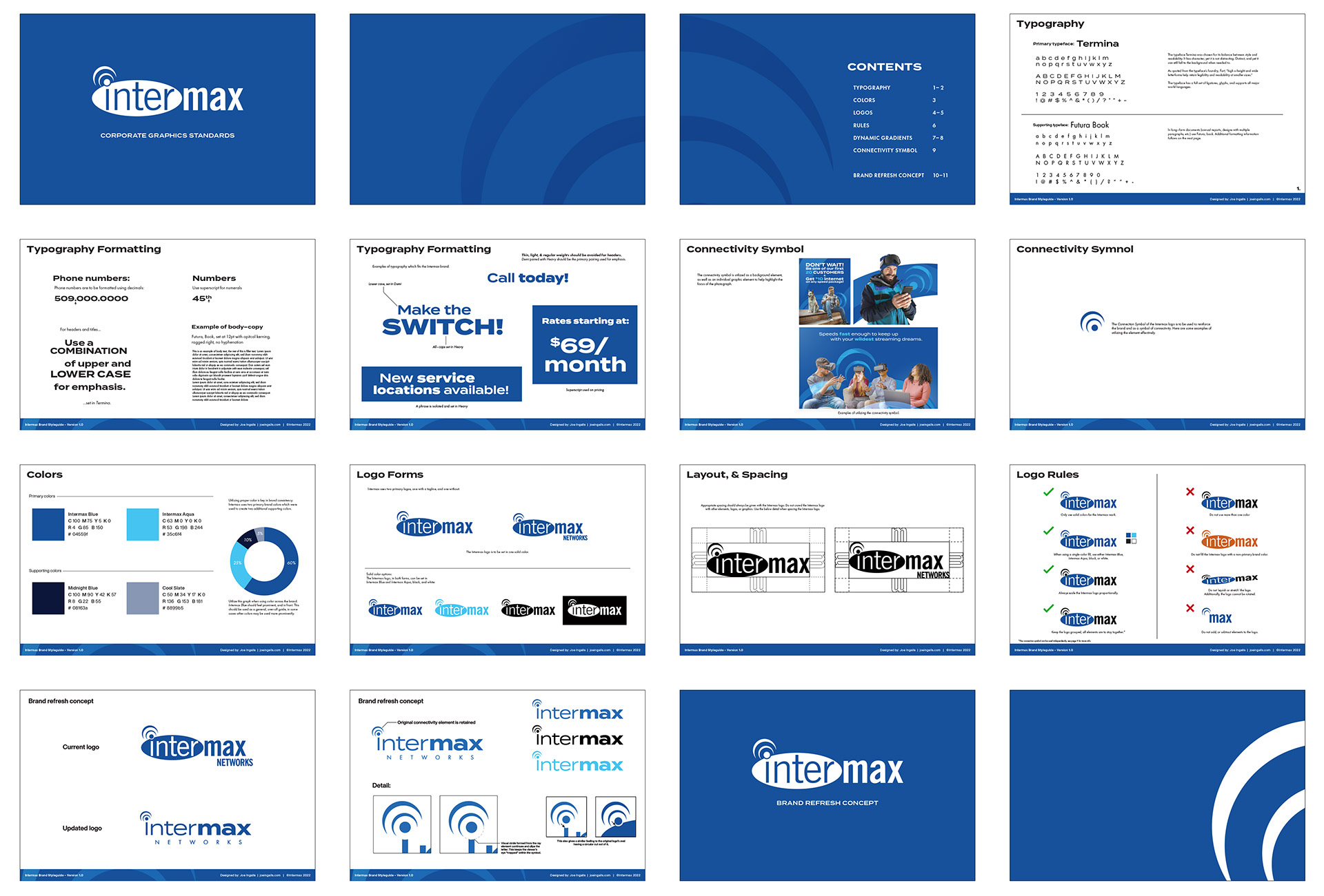 Intermax did not have an existing style–guide (a document which sets rules & helps organize the look and feeling of a brand); so creating a new internal style–guide was crucial, & the first step.