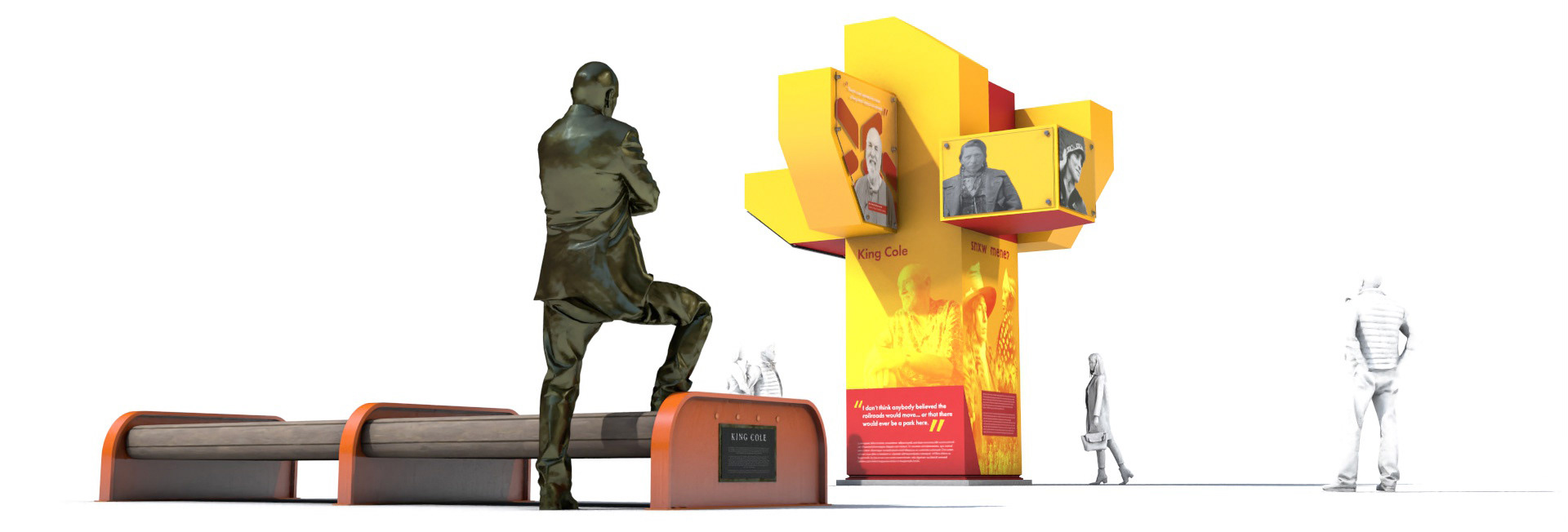 Additionally, I created a concept for a bronze sculpture of King Cole, a big player in making Riverfront Park a reality. I utilized a photo-scan 3D model, adjusted the pose, and added King Cole's face: